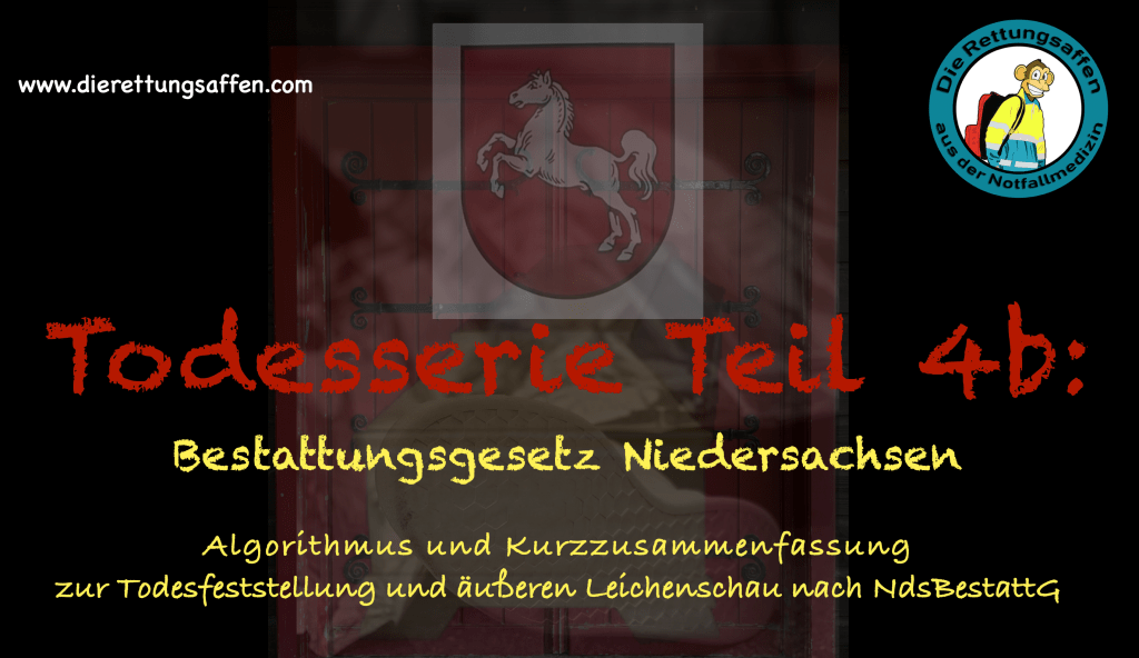 Auch wenn beides auf die in Niedersachsen geltenden Regelungen zugeschnitten ist, so lässt sich der Algorithmus gleichwohl auf andere Bundesländer durchaus adaptieren, wobei natürlich auf die jeweils einschlägigen Besonderheiten zu achten ist. Eine eigene Zusammenfassung der einzelnen Bestattungsgesetze hatten wir in Teil 4a („Todesserie Teil 4a – Die Bestattungsgesetze der Bundesländer im Überblick„) vorgestellt.