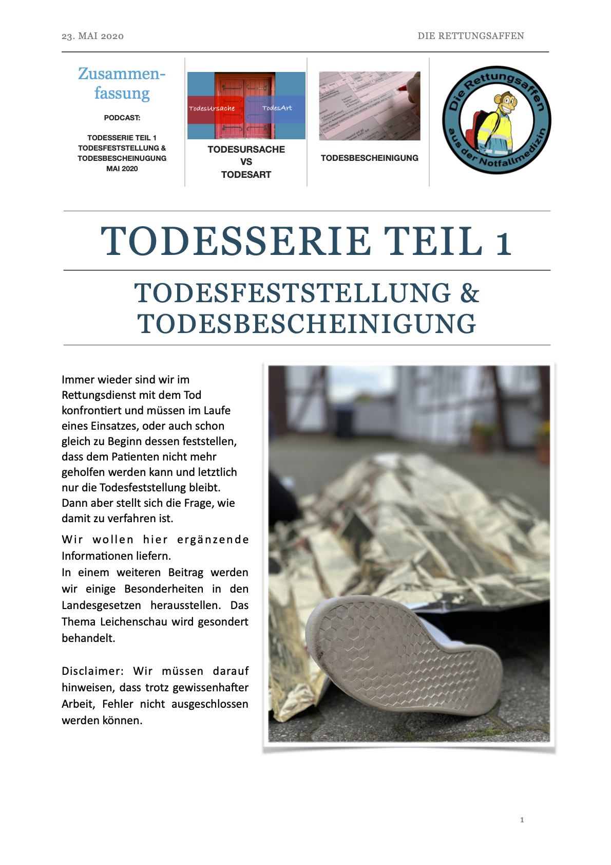 (C) Copyright, Die Rettungsaffen, Alle Rechte vorbehalten: Wir veröffentlichen unsere Ausarbeitungen im Rahmen des #foam/#foamed Gedanken, also für alle frei zugänglich. Daher untersagen wir ausdrücklich jedwede kommerzielle, auch nur teilkommerzielle Nutzung (auch nachträglich) unserer Werke (u.a. Bild, Ton, Video und Text). Dies bedarf in jedem Fall einer schriftlichen Einwilligung der Autorengesamtheit – DIE RETTUNGSAFFEN. Eine nichtkommerzielle Nutzung (wie z.B. auch Schulungs-, Ausbildungs- und Fortbildungszwecken) darf erfolgen, sofern wir als Quelle richtig und vollständig zitiert, und keinerlei Veränderungen (z.B. inhaltlich und/oder graphisch) – ohne unser schriftliches, ausdrücklich erklärtes, Einverständnis – vorgenommen werden.