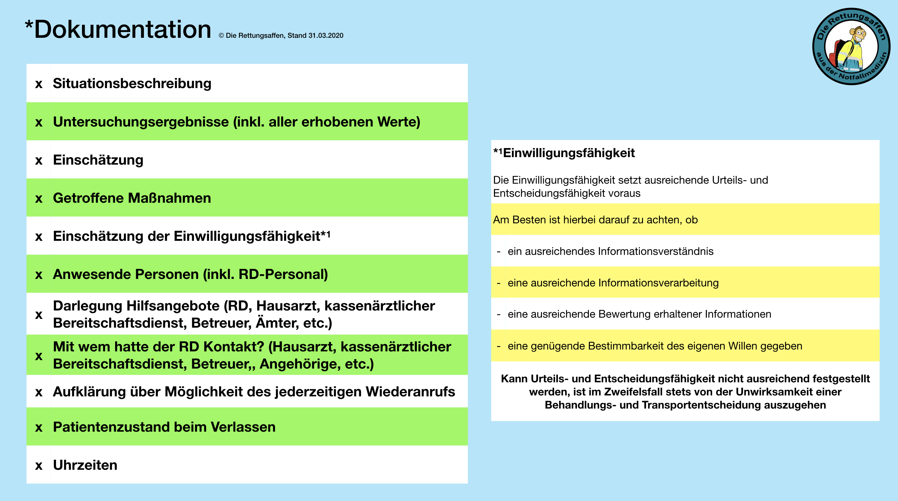 (C) Copyright, Die Rettungsaffen, Alle Rechte vorbehalten: Wir veröffentlichen unsere Ausarbeitungen im Rahmen des #foam/#foamed Gedanken, also für alle frei zugänglich. Daher untersagen wir ausdrücklich jedwede kommerzielle, auch nur teilkommerzielle Nutzung (auch nachträglich) unserer Werke (u.a. Bild, Ton, Video und Text). Dies bedarf in jedem Fall einer schriftlichen Einwilligung der Autorengesamtheit – DIE RETTUNGSAFFEN. Eine nichtkommerzielle Nutzung (wie z.B. auch Schulungs-, Ausbildungs- und Fortbildungszwecken) darf erfolgen, sofern wir als Quelle richtig und vollständig zitiert, und keinerlei Veränderungen (z.B. inhaltlich und/oder graphisch) – ohne unser schriftliches, ausdrücklich erklärtes, Einverständnis – vorgenommen werden.